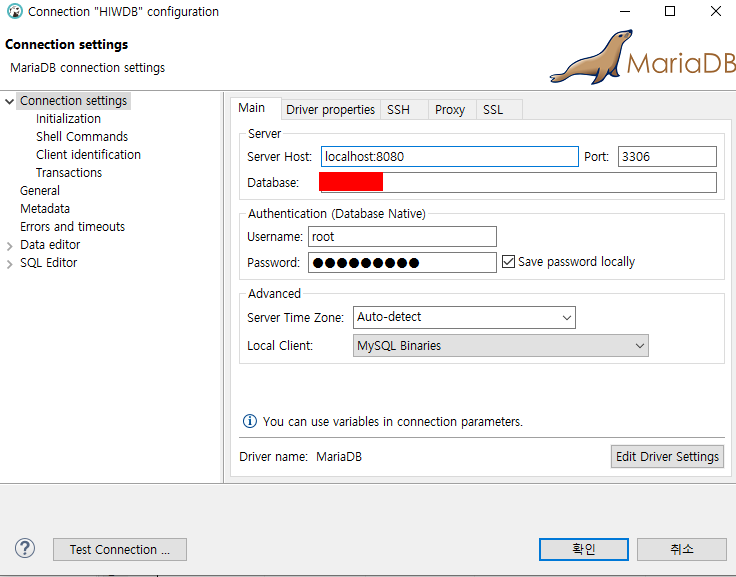 DBeaver를 설치 후 마리아 DB와 연동을 하려고 설정을 했다